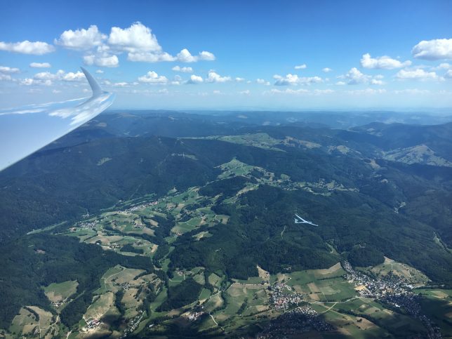 Robert Schröder nutzte das Wetter, um einen „Ausflug“ über den Schwarzwald zu machen und legte dabei in der Wertungszeit von 2,5 Stunden 291km mit einem Schnitt von 116km/h zurück. Zwar liegt er damit in einem höheren Geschwindigkeitsbereich als die beiden Vereinskollegen, bekommt aber aufgrund seines leistungsfähigeren Flugzeugs eine schlechtere Indexwertung. Einen Speedpunkt mehr ergatterte somit Simon Schröder, der sich fliegerisch jedoch eher auf das Gebiet südwestlich der Donau beschränkte.